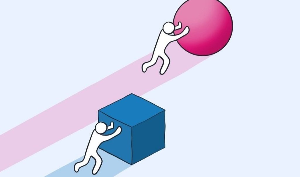 Лесно или трудно е “упражнението” с тежката раница, няма да коментирам. Интересното идва после. Тежката раница я няма, вече се смята, че си напреднал. Няма нужда от раница, минаваш на следващо ниво и пак е нужно да тикаш, този път голяма кръгла сфера. По принцип се движи по-лесно и бързо (зависи и от какъв “материал” е тази топка). А най-важното е, че се оказва хитра – лесно се “търкаля” напред, но какво пречи да промени посоката? Ако материалът е много “тежък”, директно те “премазва”. 🙂 Неслучайни са думите, че каквото сам си направиш, и “най-големият ти враг не може да направи”. 🙂