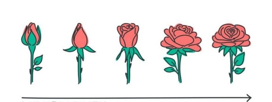 Правя сравнение с детството ми, когато последното, което “смелостта” ми искаше беше внимание. Некултурно беше, и продължава да бъде, натрапване и търсенето на внимание. Радвам се, че още от едно време, нямам съзнателен спомен да съм търсила внимание. Затова приемам затворените варианти на розата в илюстрацията. Досущ като нещо такова съм била…