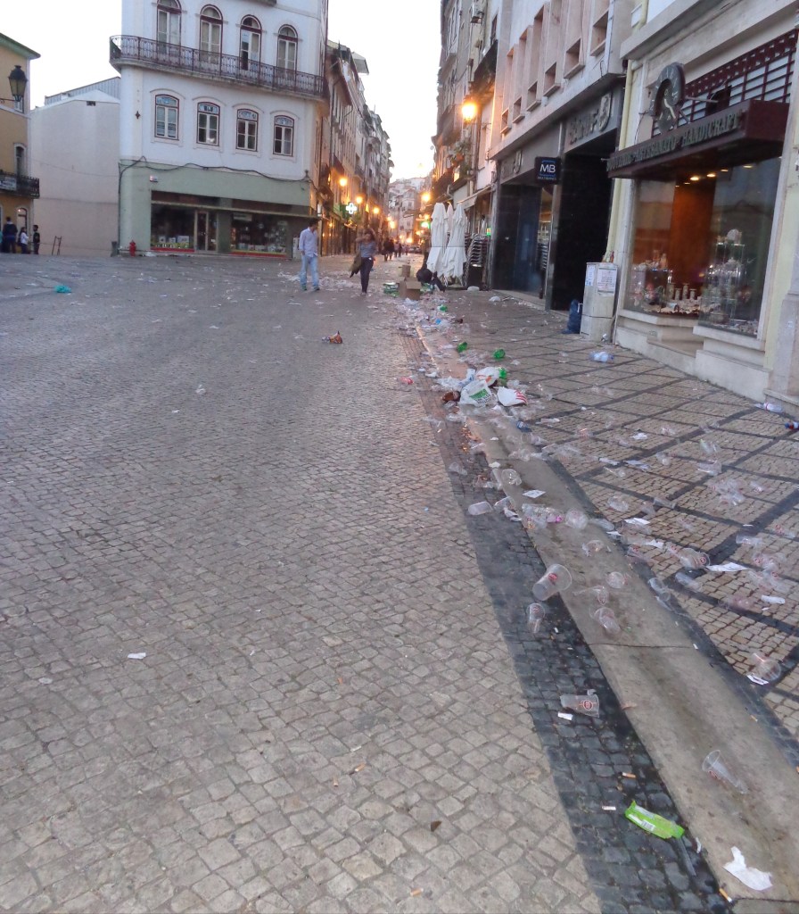 Добре си спомням вървенето по чисто “новите” за мен улици в Португалия. (Много “скучни” снимки на разни улици и тротоари съм правила.. Интересно ми е било, защото беше наистина “ново” 🙂 ). .. Впечатляващо чисто беше по време на фестивала Queima das fitas – ежедневно улиците биваха заливани с бира и опаковки, а на следващия ден нямаше следа от друго, освен чисти, автентични улици. Не знам как и кога се случваше чистенето, но важното е, че сетих. 🙂