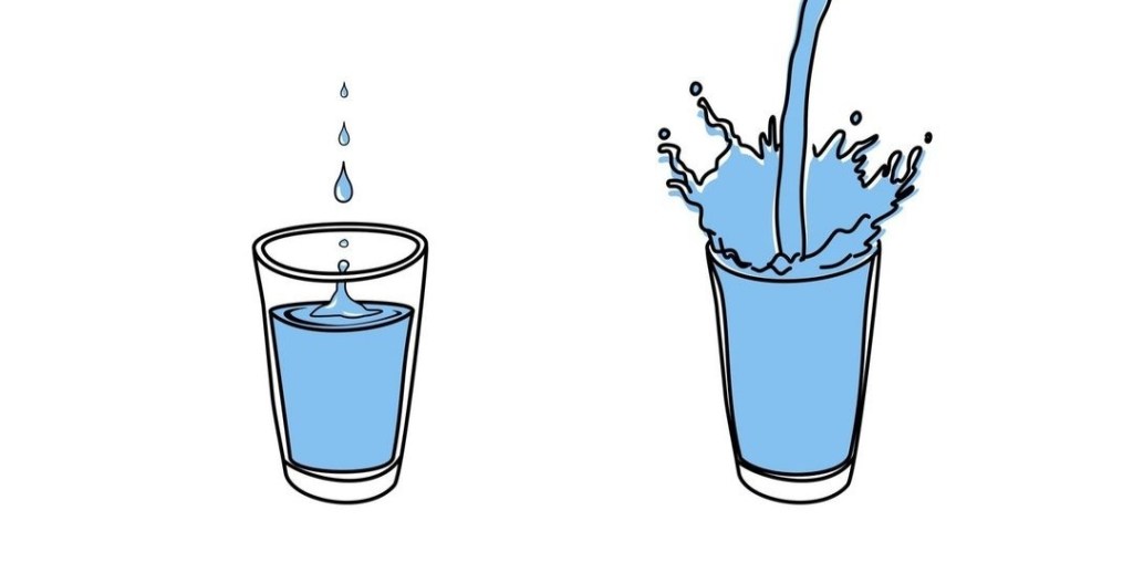 Първата чаша от визуализацията е предишното десетилетие, започващо с 2. Тогава диагнозата дойде в моя живот. Затова съм се съобразявала с нужното време. В чашата “спокойно” капва по една капка. Де да беше толкова спокойно при мен със забавянето на говора ми, извинявам се, че изнервям (най-напред себе си.)..