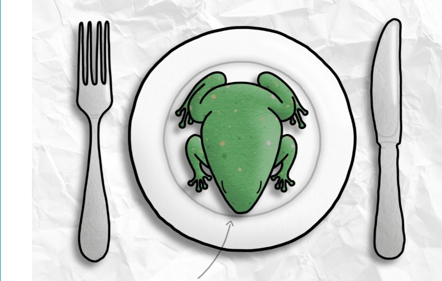 Жабата в чинията не е на мястото си. Неудобно ѝ е, очевидно е. Така се чувства всеки новодошъл проблем в живота.