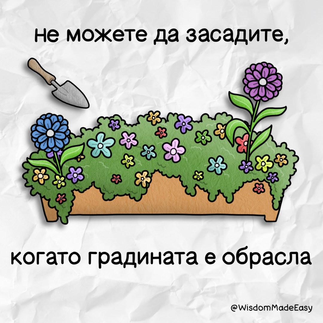 Не можеш да засадиш, когато градината е обрасла.”