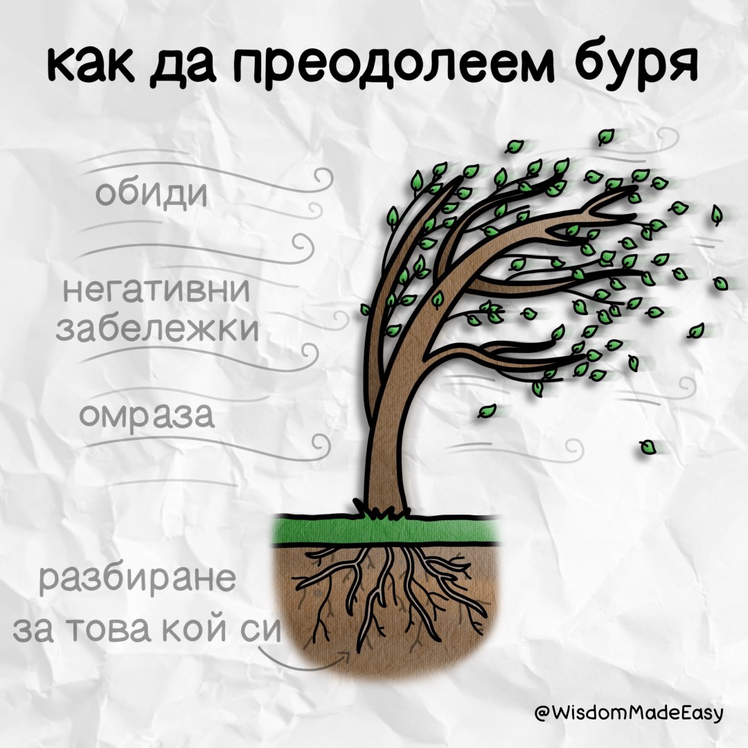 Благодаря на корените си. Бурите минават и занимават. (Само диагнозата ми така си “стои”. Приела съм го.) Важни за мен се оказаха корените ми. Наблюдава се стабилност и думата ми харесва. Няма значение дали и колко ти харесва, значение за мен има осъзнатостта. Уча се. 🙂